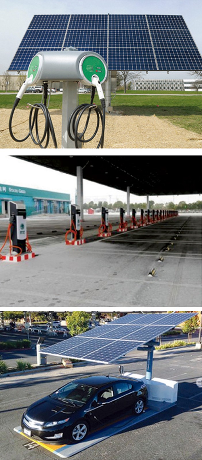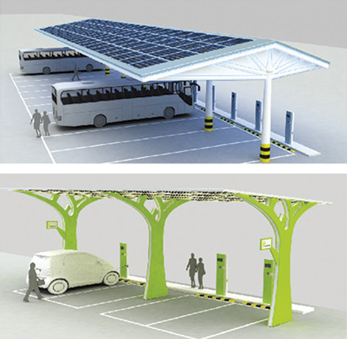 太陽能充電站系統(tǒng)是由光伏組件.逆變器、直流充電機(jī)、直流充電樁、交流充電樁、計(jì)費(fèi)系統(tǒng)、電動(dòng)車用蓄電池等組成。當(dāng)電動(dòng)車安裝有車載充電機(jī)時(shí),可通過交流充電樁對其進(jìn)行充電。當(dāng)電動(dòng)車沒有安裝車載充電機(jī)時(shí),通過直流充電樁對其充電。而來不及充電的客戶還可以通過更換蓄電池來繼續(xù)行駛。